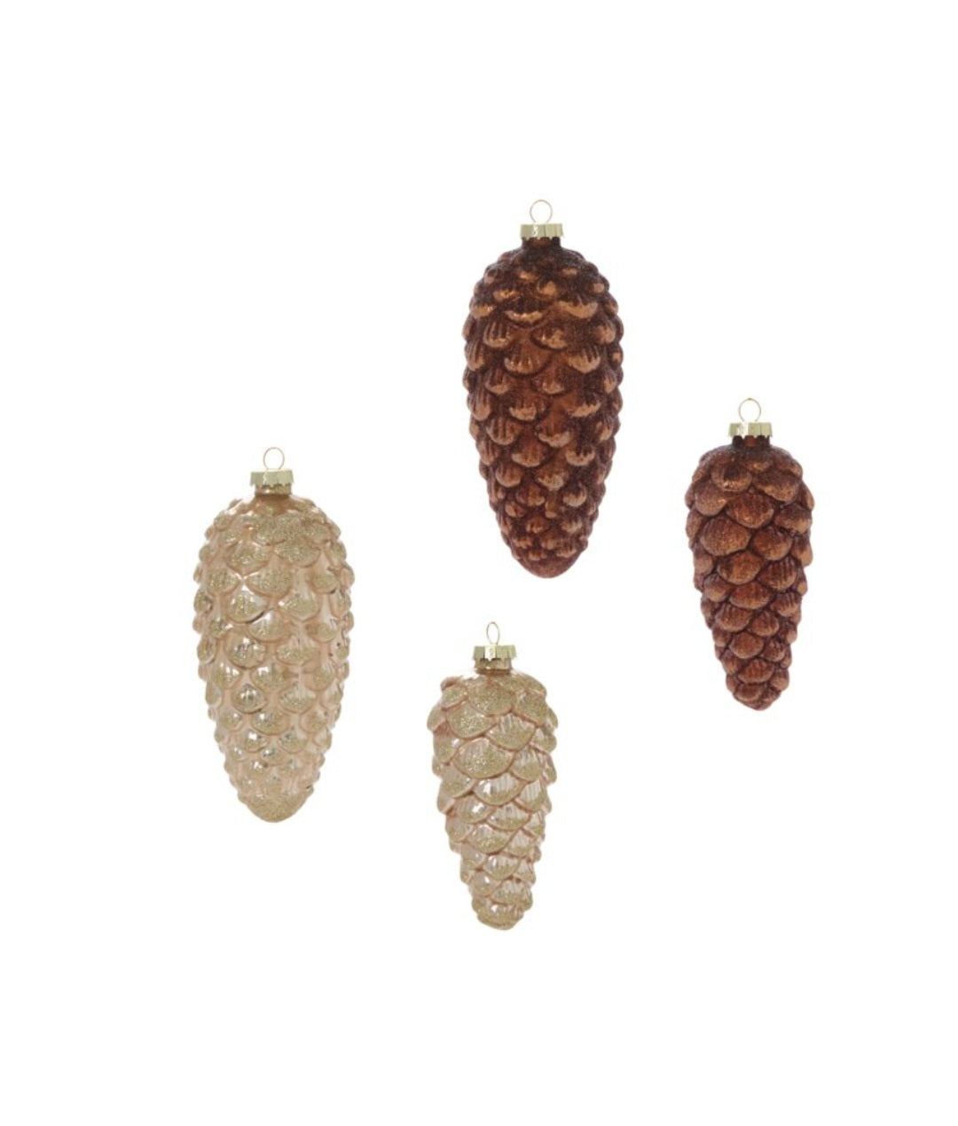 Decorate the Christmas tree with the Frosted Pinecone Ornament Collection, a nature inspired. These pinecones come with a metallic string and are perfect on the tree or styled as bowl fillers as festive tabletop decor.